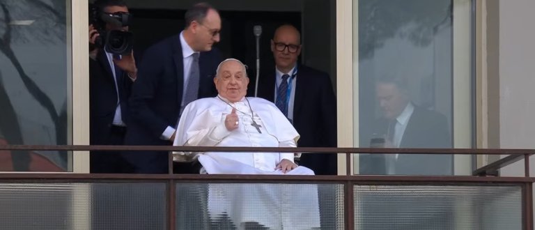 El Papa Francisco ha recibido el alta hospitalaria este domingo y antes de partir a la Casa Santa Marta, donde proseguirá con su recuperación, desde el balcón de la quinta planta del hospital Gemelli ha aparecido en silla de ruedas donde ha saludado a las más de 3.000 personas que se encontraban a sus puertas para darle un cariñoso recibimiento.