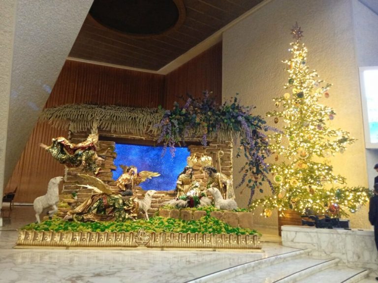 La Navidad ha comenzado este sábado en la plaza de San Pedro, aunque algo deslucida a causa de la lluvia y el mal tiempo. Por eso, la tradicional ceremonia ha tenido lugar en el Aula Pablo VI donde se han congregado las delegaciones que han donado los nacimientos que adornan la plaza de San Pedro y el Aula Pablo VI y el árbol que corona la plaza.